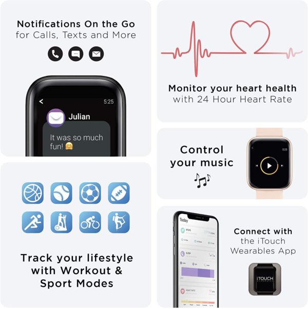 • iTouch Air 3 Smartwatch Fitness Tracker, Heart Rate, Step Counter, Sleep Monitor, Message, IP68 Swimming Waterproof for Women and Men, Touch Screen, Compatible with iPhone and Android (40mm)