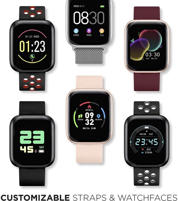 • ENHANCE SPORTS & WORKOUT TRAINING: Take your health to the next level! This waterproof watch comes complete with a calorie counter and pedometer with 4 sports modes and 5 workout modes. Measure your heart rate and sleep with the one-touch sensor.